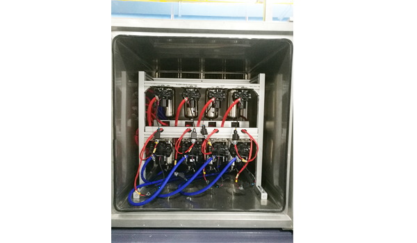 本設備是根據相關國家測試標準及客戶相關的技術要求設計的汽車真空泵性能檢測設備。本設備集成了穩(wěn)定性較高的高低溫環(huán)境箱、可編程電源、工控機、真空傳感器、電流傳感器、高精度數據采集卡等,提供產品測試的極端到常態(tài)工作環(huán)境、靈活可變的測試能量供給、穩(wěn)定可靠的數據采集和計算處理設備。該檢測設備界面美觀、簡潔,操作面板簡單易懂,在實現完整的汽車真空泵性能測試功能的同時能夠根據客戶提供的檢測標準實時輸出產品相關檢測報告并自動判定產品合格與否,方便客戶使用。